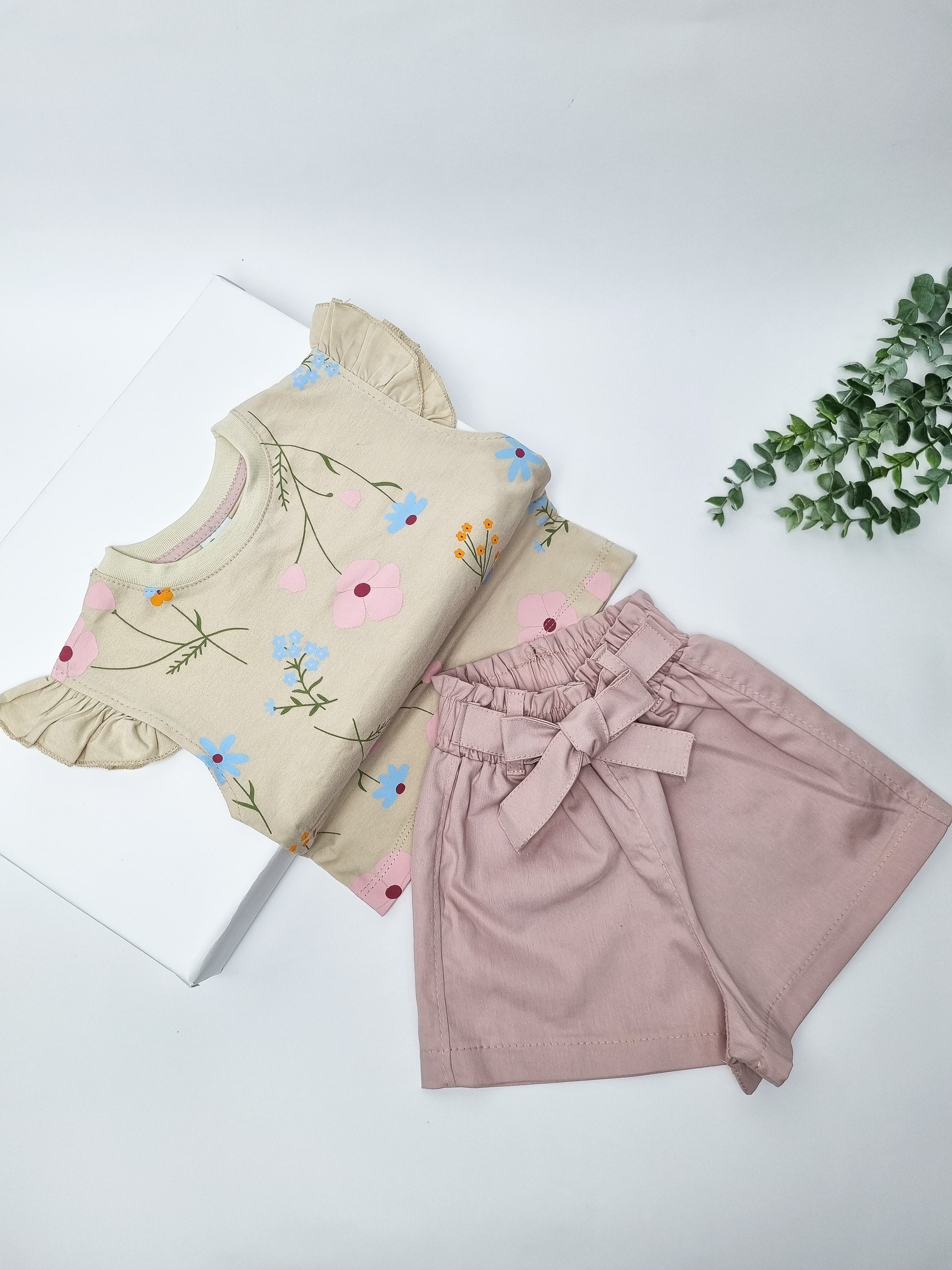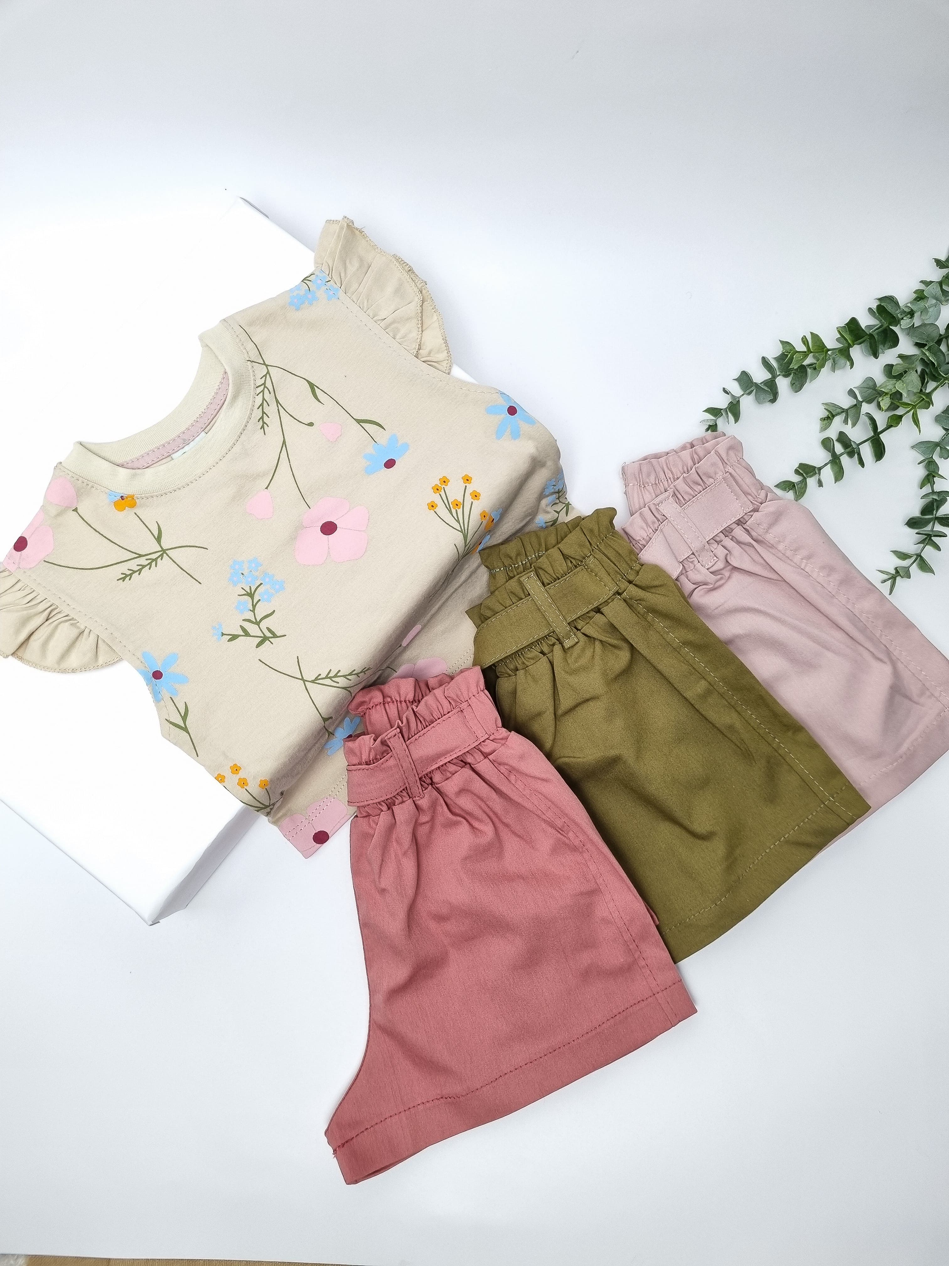 تاپ شلوارک کتان پنبه دخترانه از ۱ سال تا ۴ سال